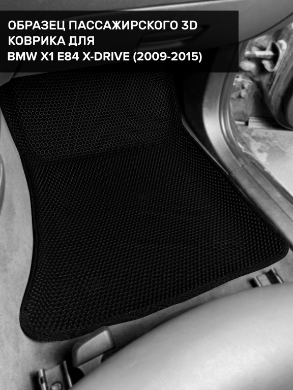 Автомобильные 3д коврики для BMW X1 E84 4WD (2009-2015) в салон авто и багажник сделаны из инновационного полимерного материала EVA, изысканная структура в виде ячеек не дает воде, пыли и снегу разлетаться по салону машины и багажнику. 3д коврики зафиксированы на полу определенными клипсами, соответствующими BMW X1 E84 4WD (2009-2015), и не двигаются в процессе езды.