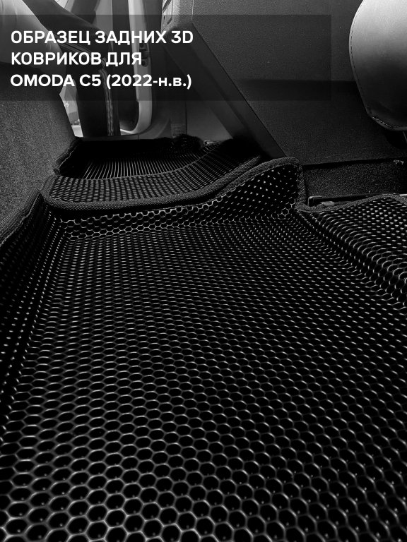 Автомобильные 3д коврики для Omoda C5 (2022-н.в.) в салон авто и багажник сделаны из инновационного полимерного материала EVA, изысканная структура в виде ячеек не дает воде, пыли и снегу разлетаться по салону машины и багажнику. 3д коврики зафиксированы на полу определенными клипсами, соответствующими Omoda C5 (2022-н.в.), и не двигаются в процессе езды.
